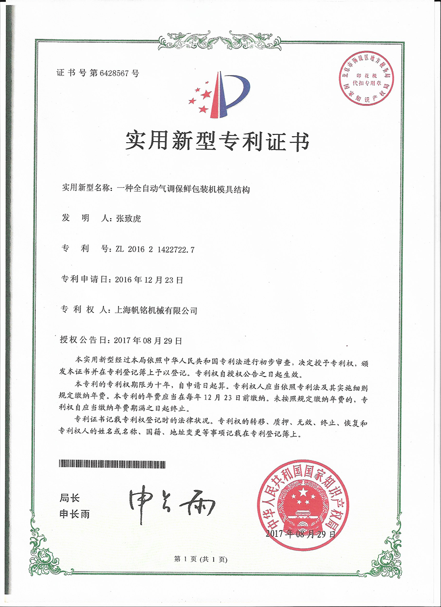 上海帆銘機(jī)械有限公司是《食品氣調(diào)保鮮包裝機(jī)》 、《食品鎖鮮包裝機(jī)》 國(guó)家團(tuán)體標(biāo)準(zhǔn)牽頭起草單位,同時(shí)也是中國(guó)食品和包裝機(jī)械工業(yè)協(xié)會(huì)理事單位、中國(guó)中央廚房工程與裝備委員會(huì)副會(huì)長(zhǎng)單位、中國(guó)智能裝備委員會(huì)常務(wù)秘書(shū)長(zhǎng)單位及中國(guó)肉類(lèi)協(xié)會(huì)理事單位。
